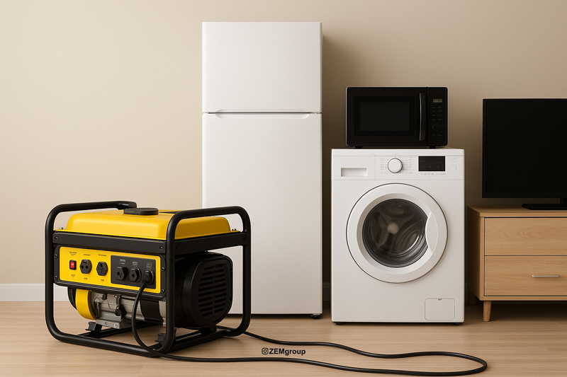 - همیشه بهتر است ظرفیت موتور برق را کمی بیشتر از جمع توان مصرفی انتخاب کنید تا در برابر نوسانات و بار اضافه محافظت شود.