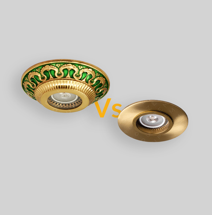 Classic downlight: Features curved lines, raised details, and sometimes decorative patterns, adding a sense of luxury and authenticity.