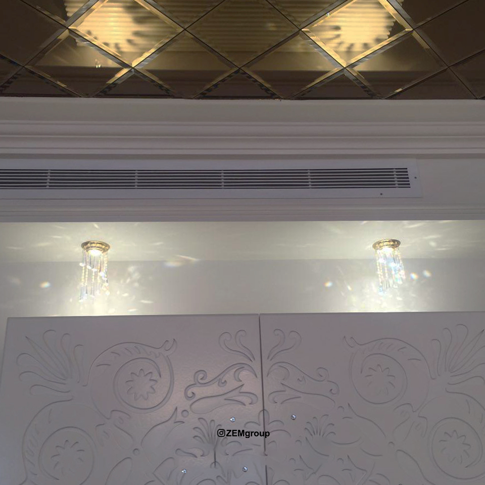 Conversely, in a lobby with classic décor, decorative columns, or luxurious materials such as marble and natural wood, classic or brass ceiling lights are the best option. These models feature intricate designs with gold or bronze accents, adding a unique shine to the ceiling and creating a majestic and regal atmosphere.