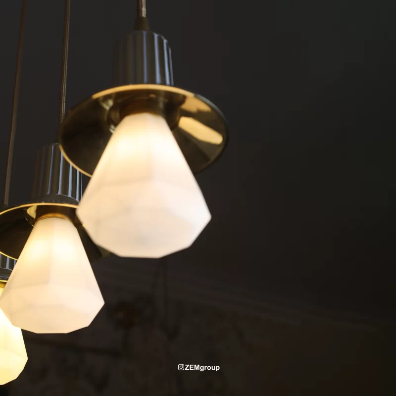 Along with room size, ceiling height is important. A 15 m² room with a 3.5 m ceiling requires more light than the same room with a 2.8 m ceiling. In taller rooms, the main ceiling light should either be more powerful or replaced with multi-arm chandeliers to ensure light reaches the floor.