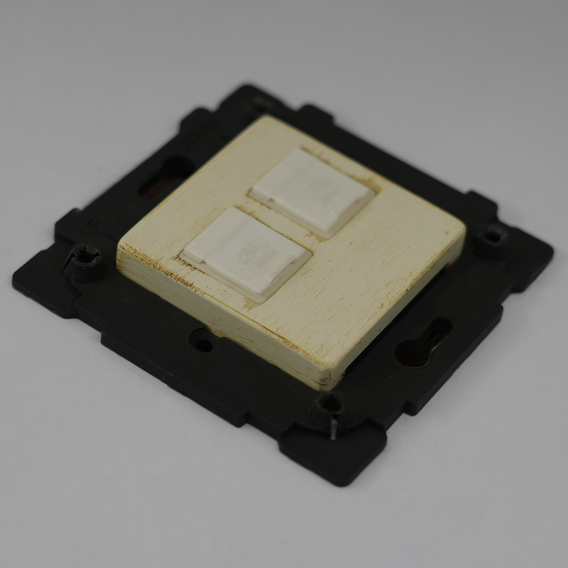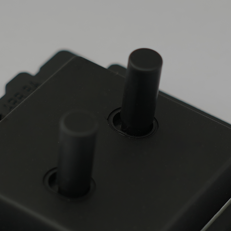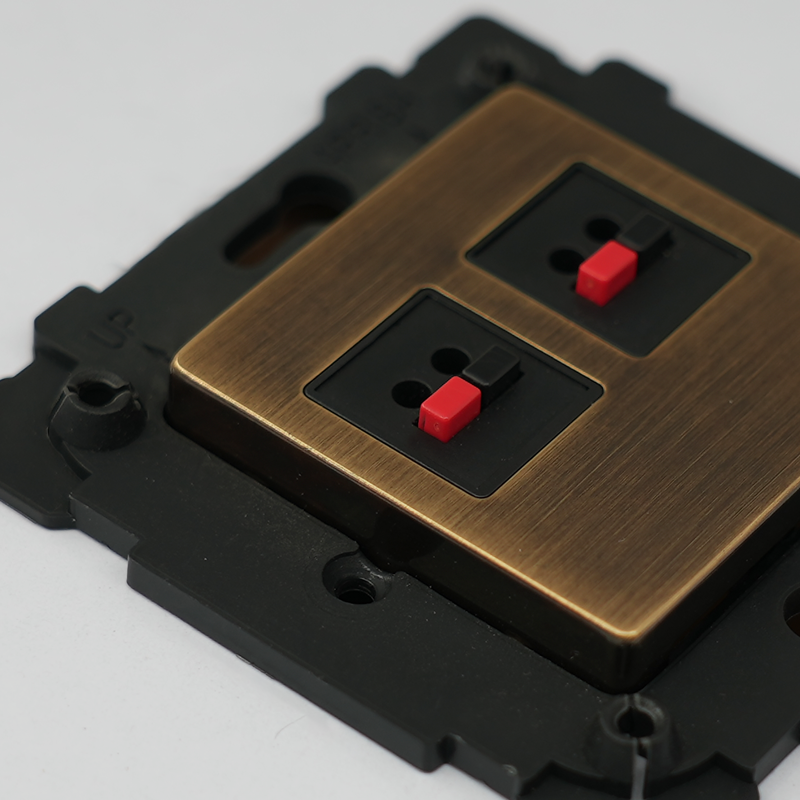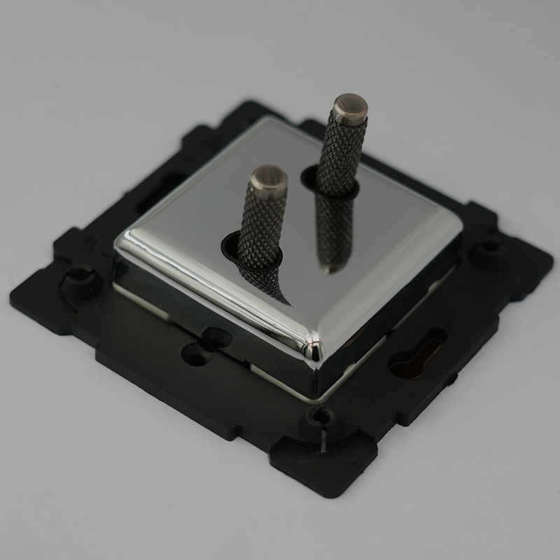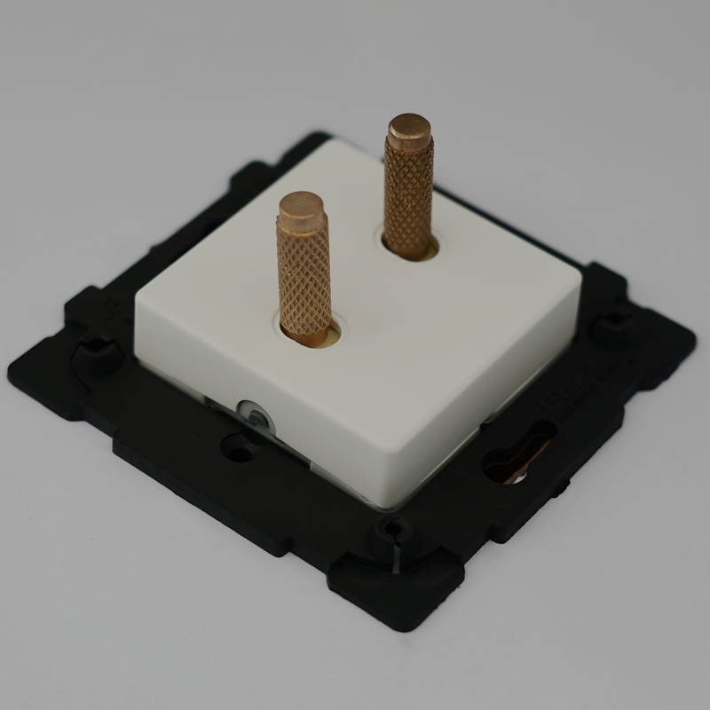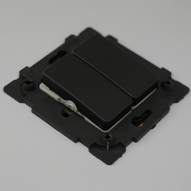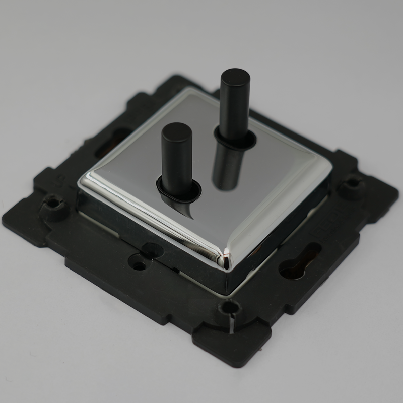 The cover plate of the double one-way toggle switch can be made of plastic (white or black) or brass (bright gold, bright patina, bright chrome, etc.). Customization options are available for this type of double one-way toggle switch.