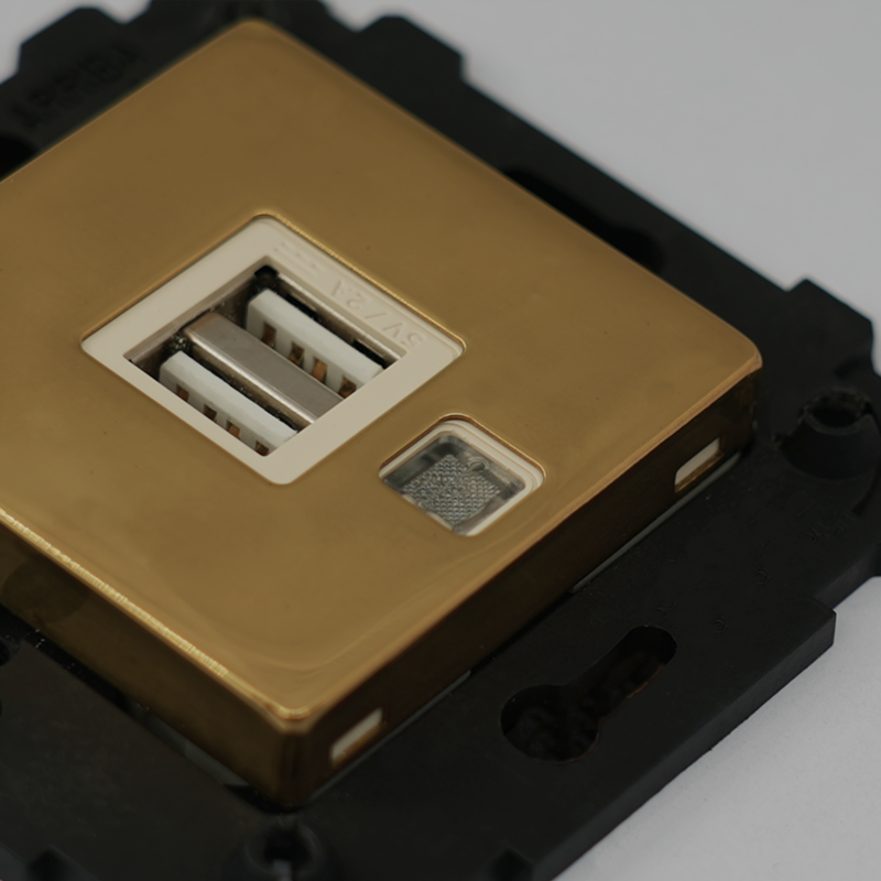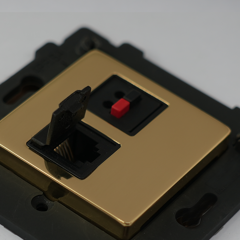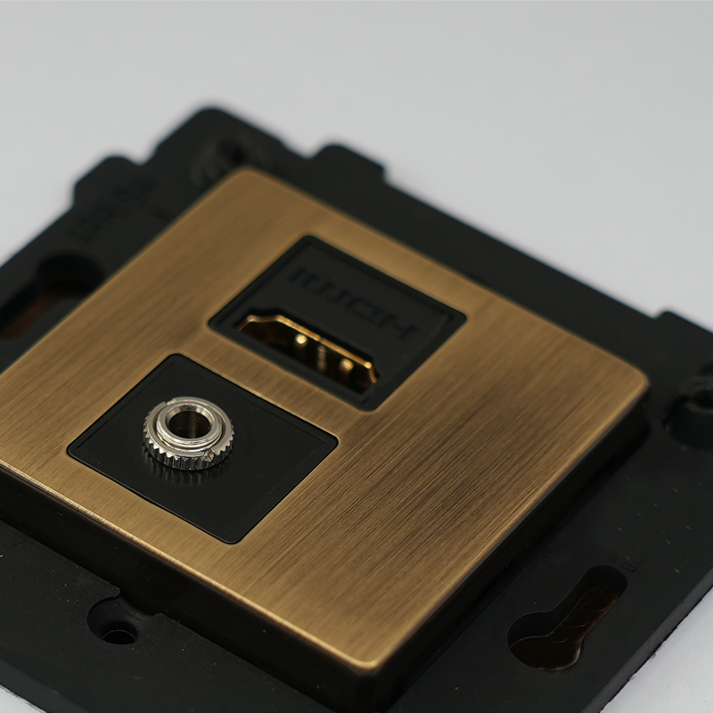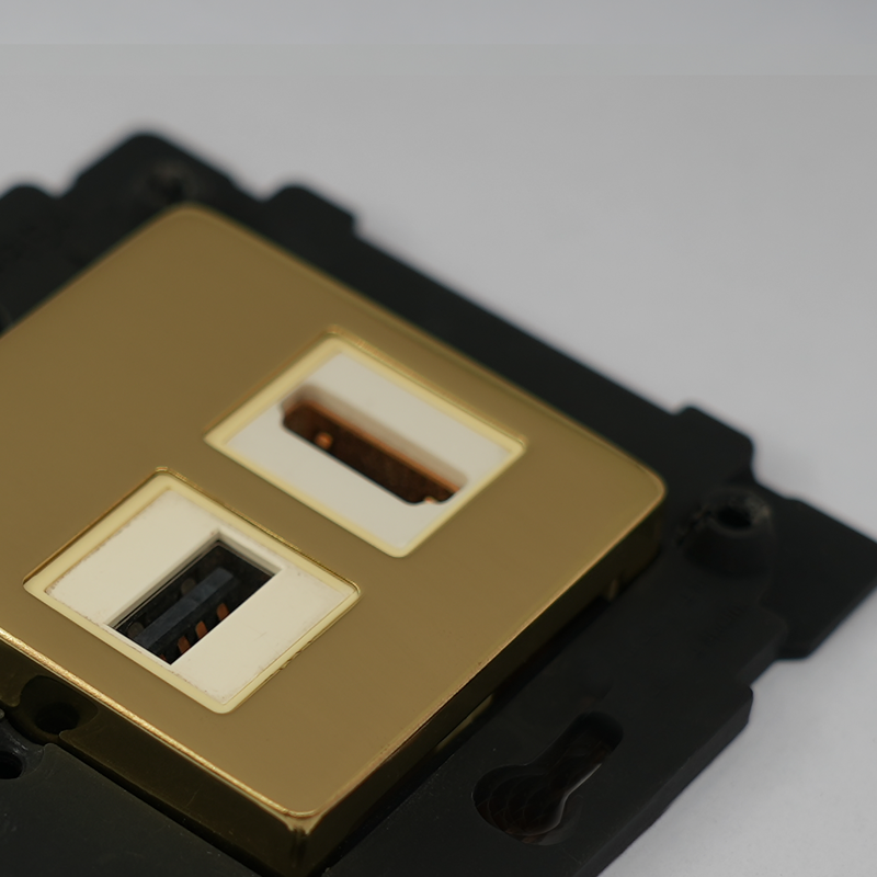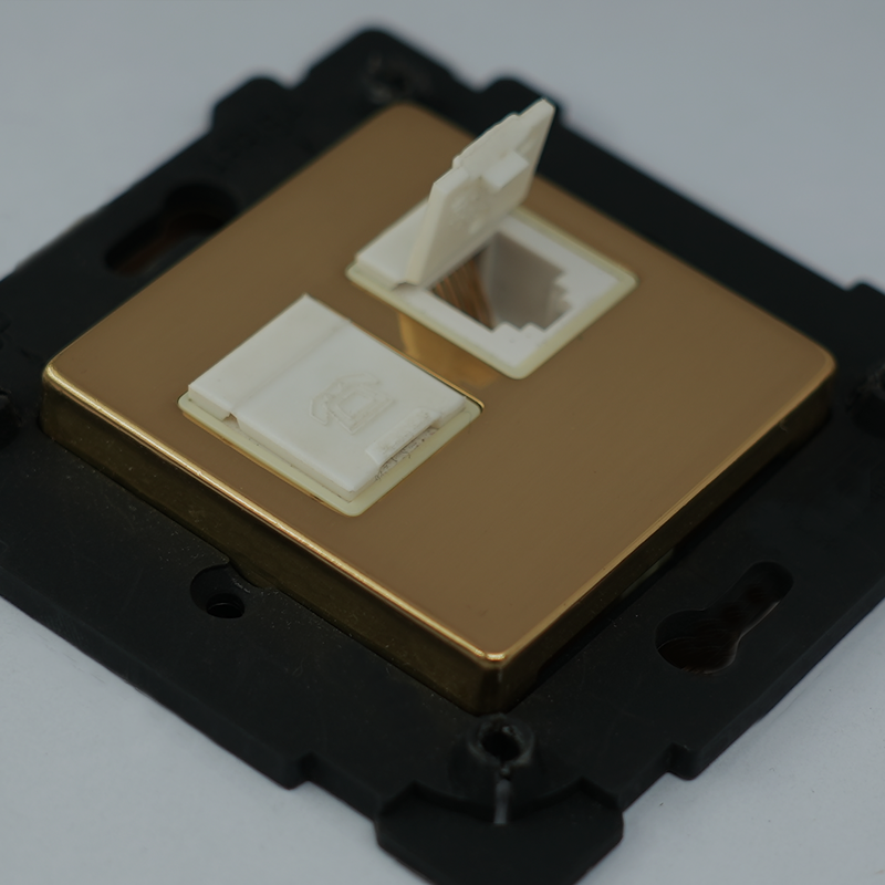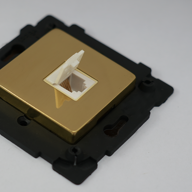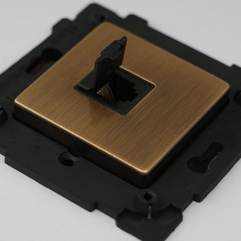 These mechanisms include sockets for telephone, network, audio, HDMI, USB, and more. The cover plates for these mechanisms can be made of plastic (white and black) or brass (bright gold, bronze, bright chrome, bright patina, etc.).