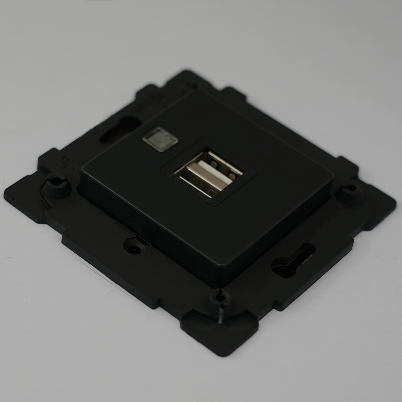 The USB charger serves as a replacement for traditional adapters and is installed as a built-in module within the switch and socket system.