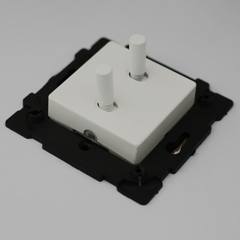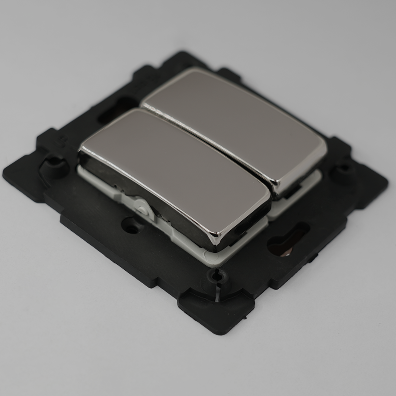 The double one-way switch consists of two independent single-pole switches within one mechanism, each capable of switching a separate circuit on or off independently. Double switches are used when there is a need to control two lighting sources either simultaneously or separately from a single location.