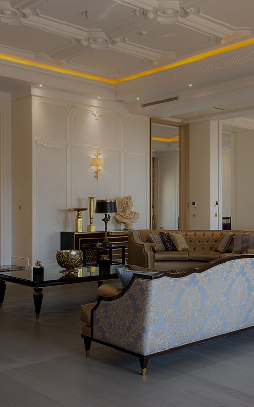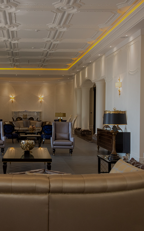- نشیمن و پذیرایی – قلب خانه است و اولین جایی که خریدار میبیند. نورپردازی لوسترها، هالوژنها و نور مخفی در سقف میتواند این فضا را مجللتر و وسیعتر نشان دهد.