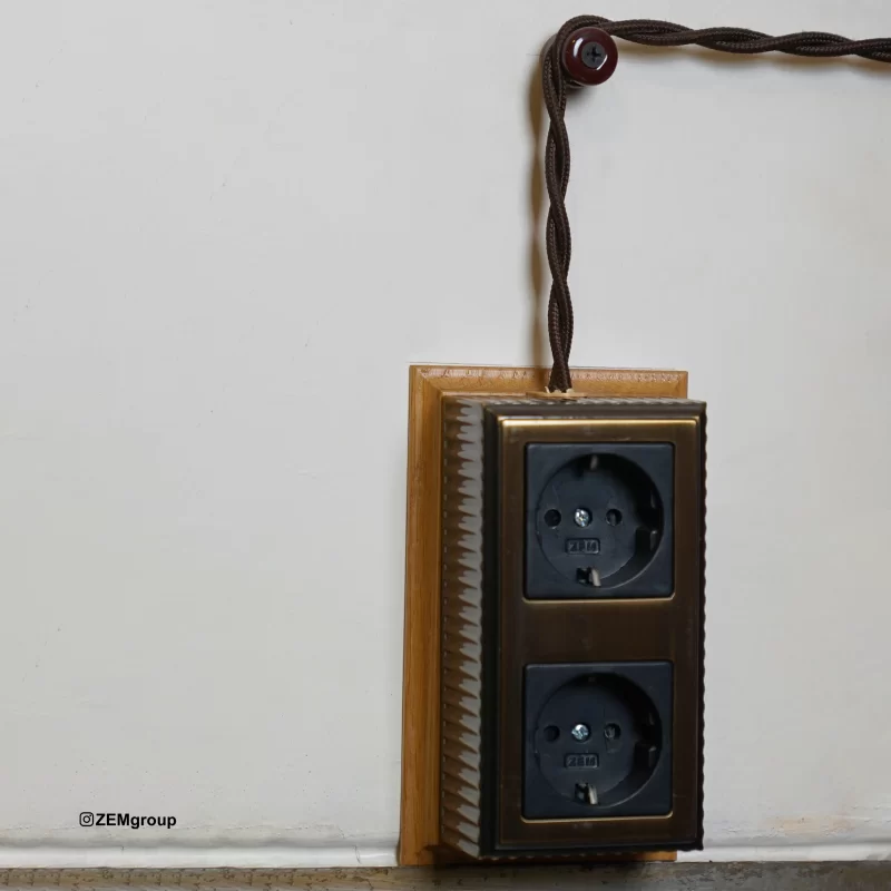 مدل اول، کلید و پریز روکار برنجی است. این نوع از محصولات با بدنه یا قاب تمام‌برنجی تولید می‌شوند و از نظر کیفیت ساخت، دوام و جلوه بصری در سطح بالایی قرار دارند. استفاده از برنج باعث می‌شود محصول در برابر رطوبت، ضربه و تغییر رنگ مقاوم‌تر باشد و در عین حال حس لوکس و اصیل‌تری به فضا منتقل کند. این مدل‌ها معمولاً در فضاهای کلاسیک، پروژه‌های خاص، ویلاها و محیط‌هایی که جزئیات دکوراسیون اهمیت بالایی دارد، مورد استفاده قرار می‌گیرند.
