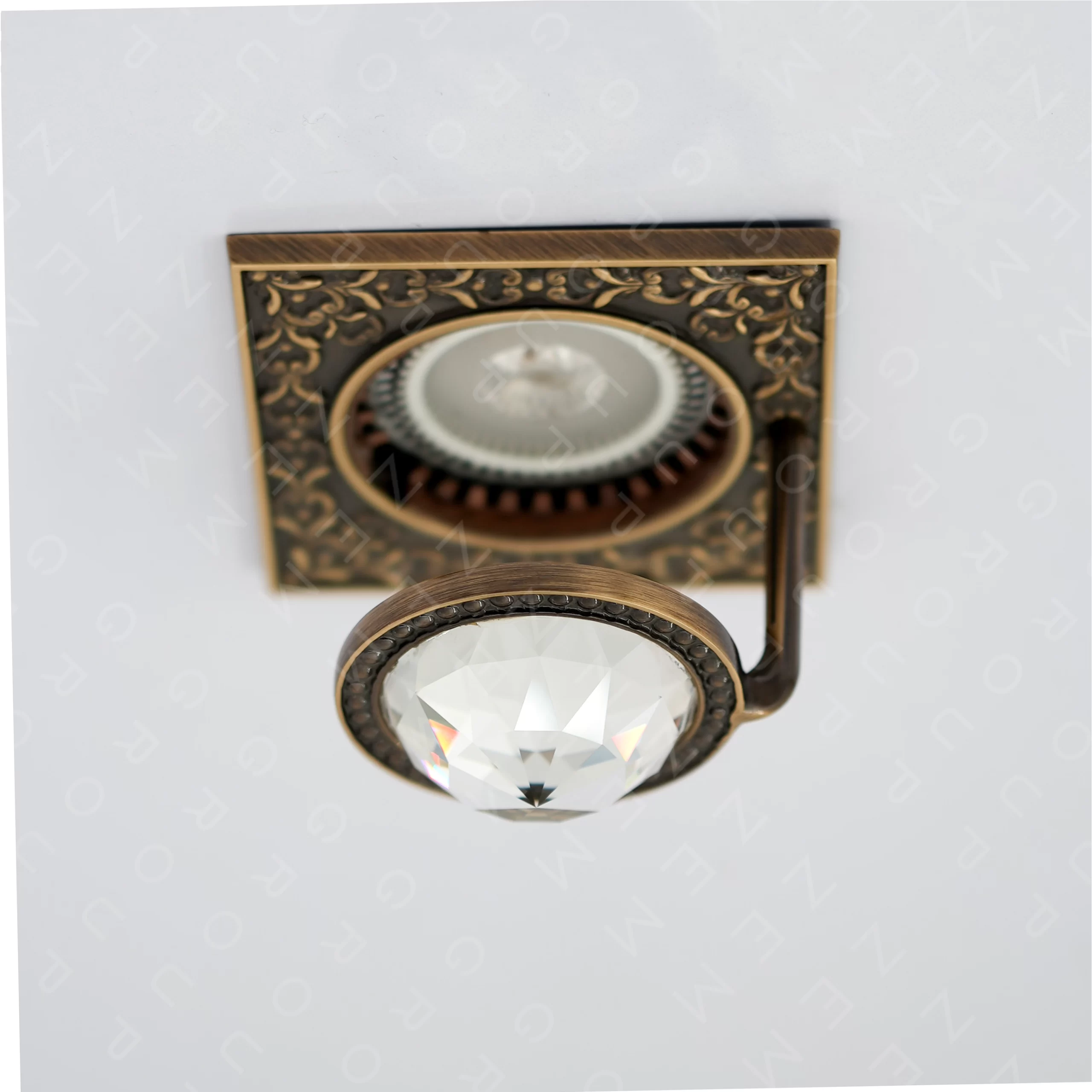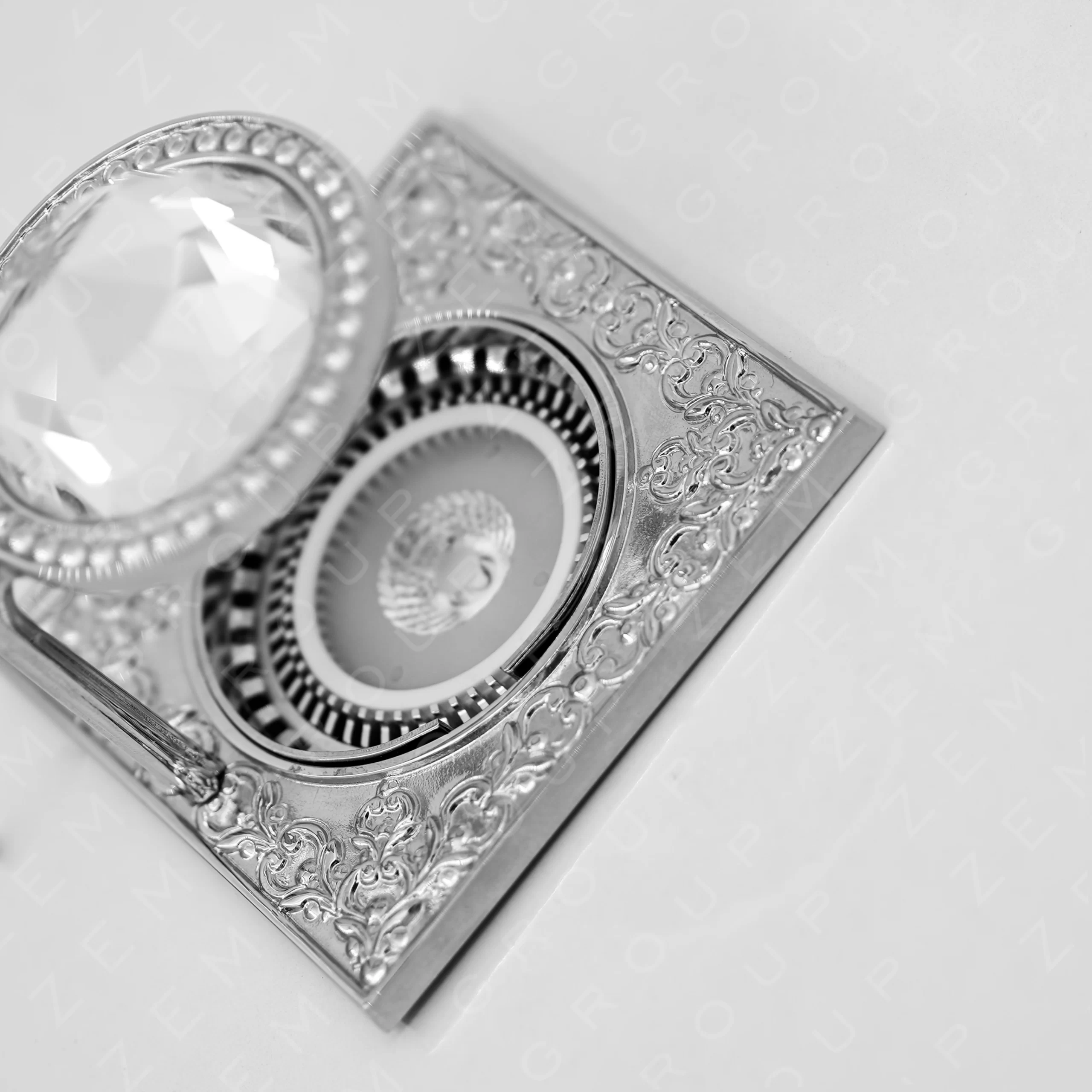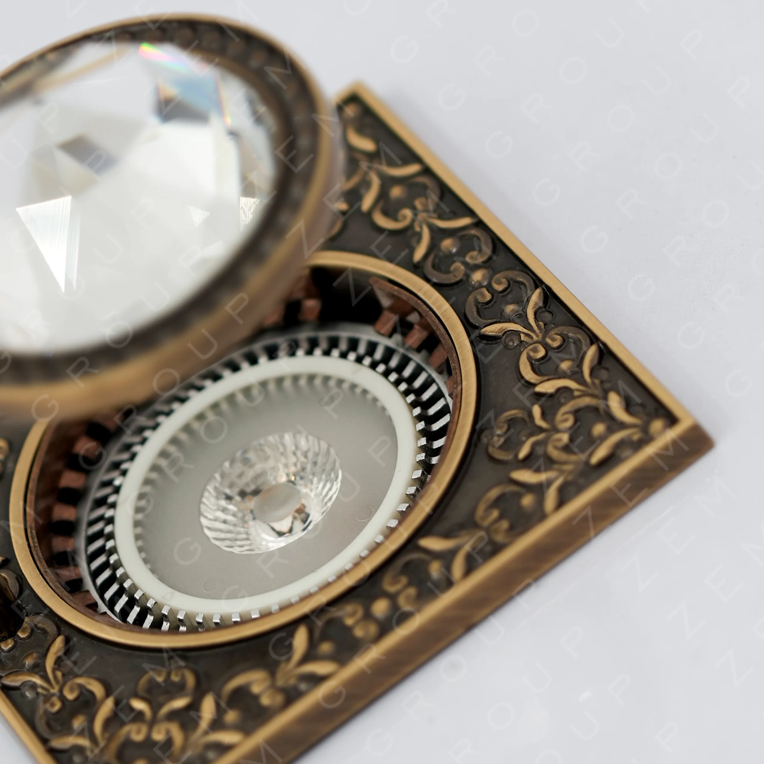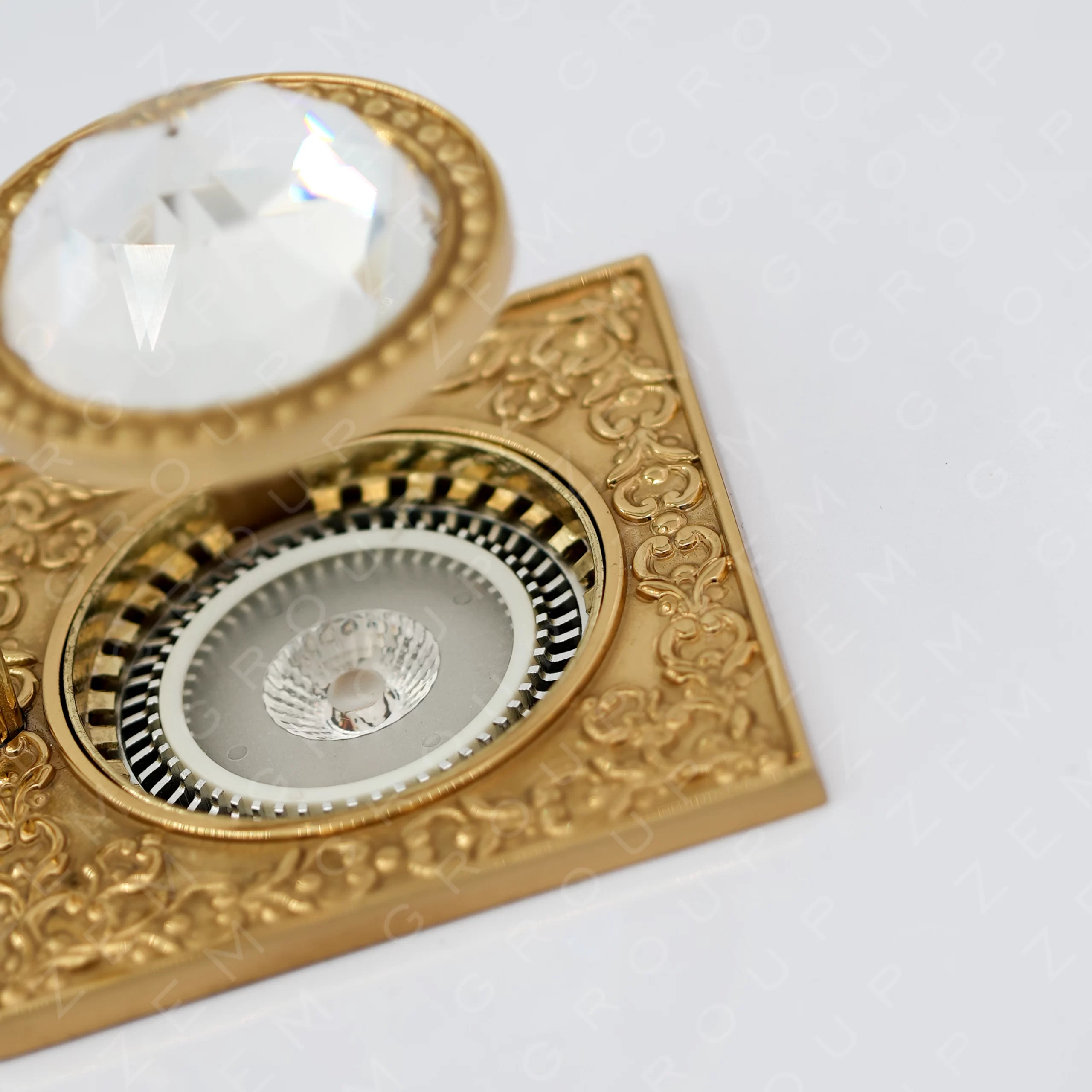 وجود کریستال تراش خورده و درخشان سواروسکی در طراحی بینظیر این قاب هالوژن لوکس سبب شده در اثر برخورد نور لامپ با آن ،درخشندگی منحصر به فردی برروی سقف یا دیوار ایجاد شود.