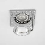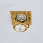 نقش و نگاره های موجود بر این قاب هالوژن خارجی کریستالی همگی کار دست هنرمندان است و در چهار رنگ طلایی و نقره ای و برنز و پتینه سفید و طلایی تهیه می شود .این قاب هالوژن کریستالی توکار رنگ ثابت است.