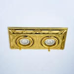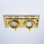 قاب هالوژن سقفی دوتایی جدید سینا به شکل مربع مستطیل است و ساختار شیک و ساده ی این چراغ سقفی توکار خارجی آن را مناسب استفاده در همه فضا ها و دکوراسیون های مدرن و کلاسیک می سازد. جنس این قاب هالوژن جدید از آلیاژ برنج با کیفیت است که عدم پوسیدگی و زنگ زدگی را به همراه دارد .رنگ قاب هالوژن برنجی سینا ثابت است.