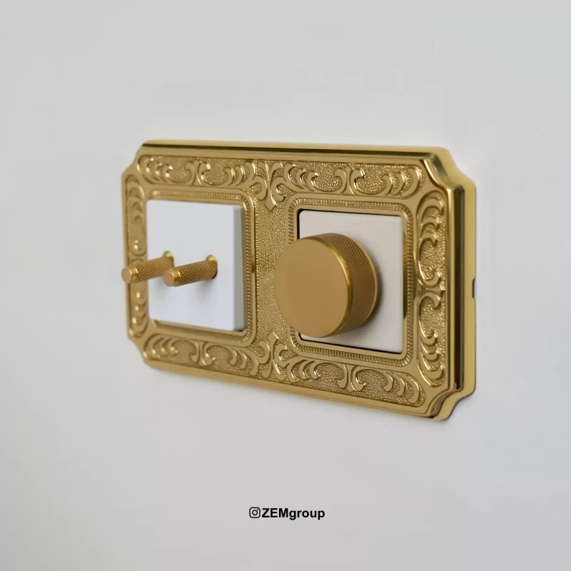 - مثال: کلید و پریز طلایی با قاب آینهای کنار یک آینه قابدار یا پشت لوستر کریستالی، جلوهای چشمگیر و منحصر به فرد ایجاد میکند.